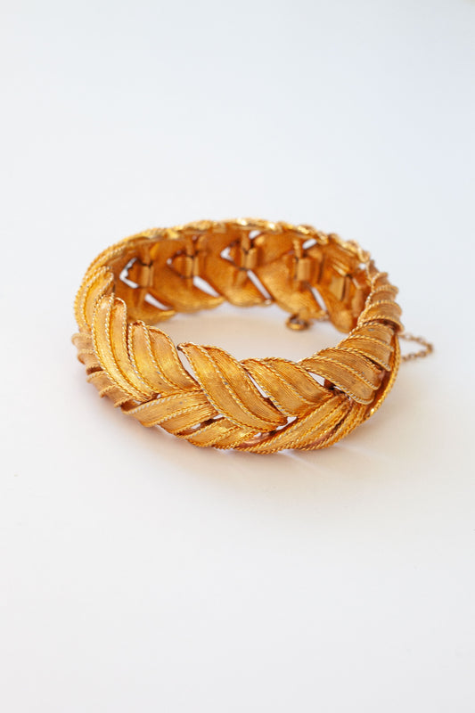 Vintage Structured Gold Leaf Bracelet
