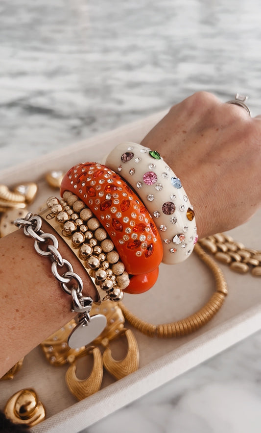 Vintage Orange Rhinestone Cuff Bracelet