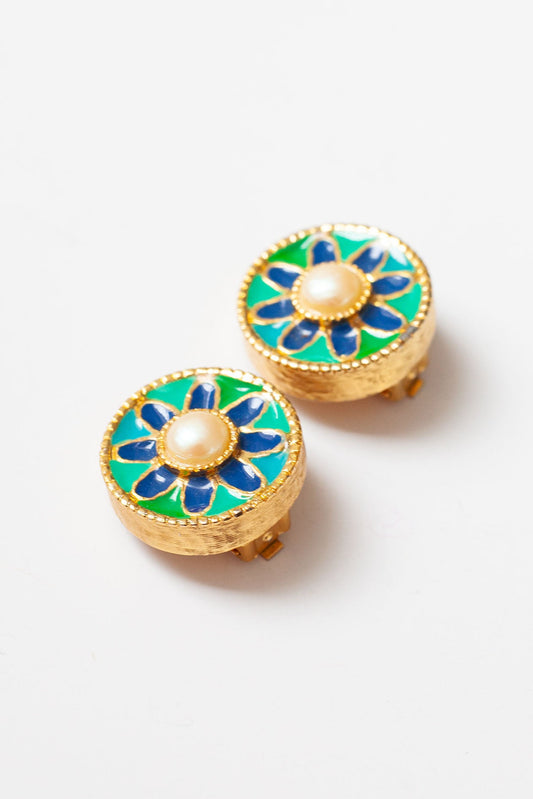 Vintage Enamel and Pearl Earrings