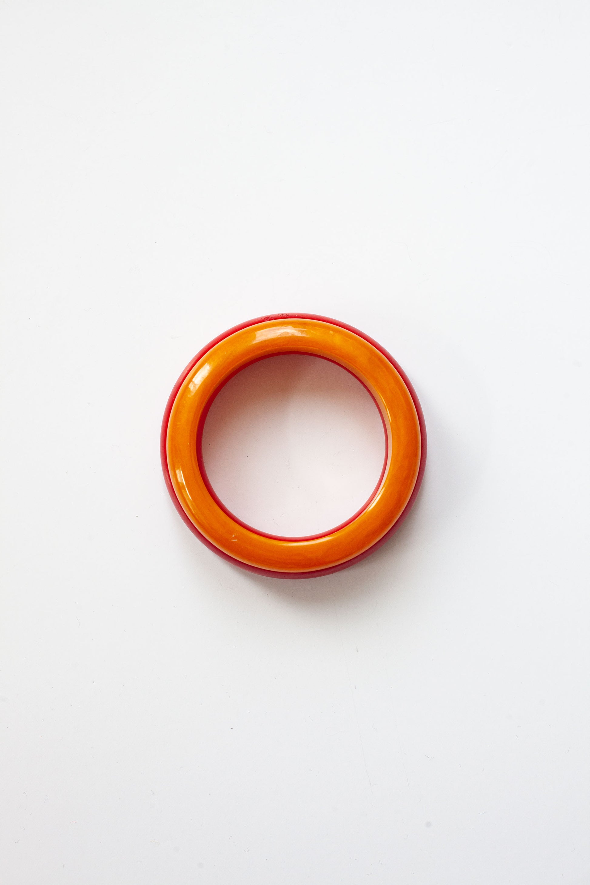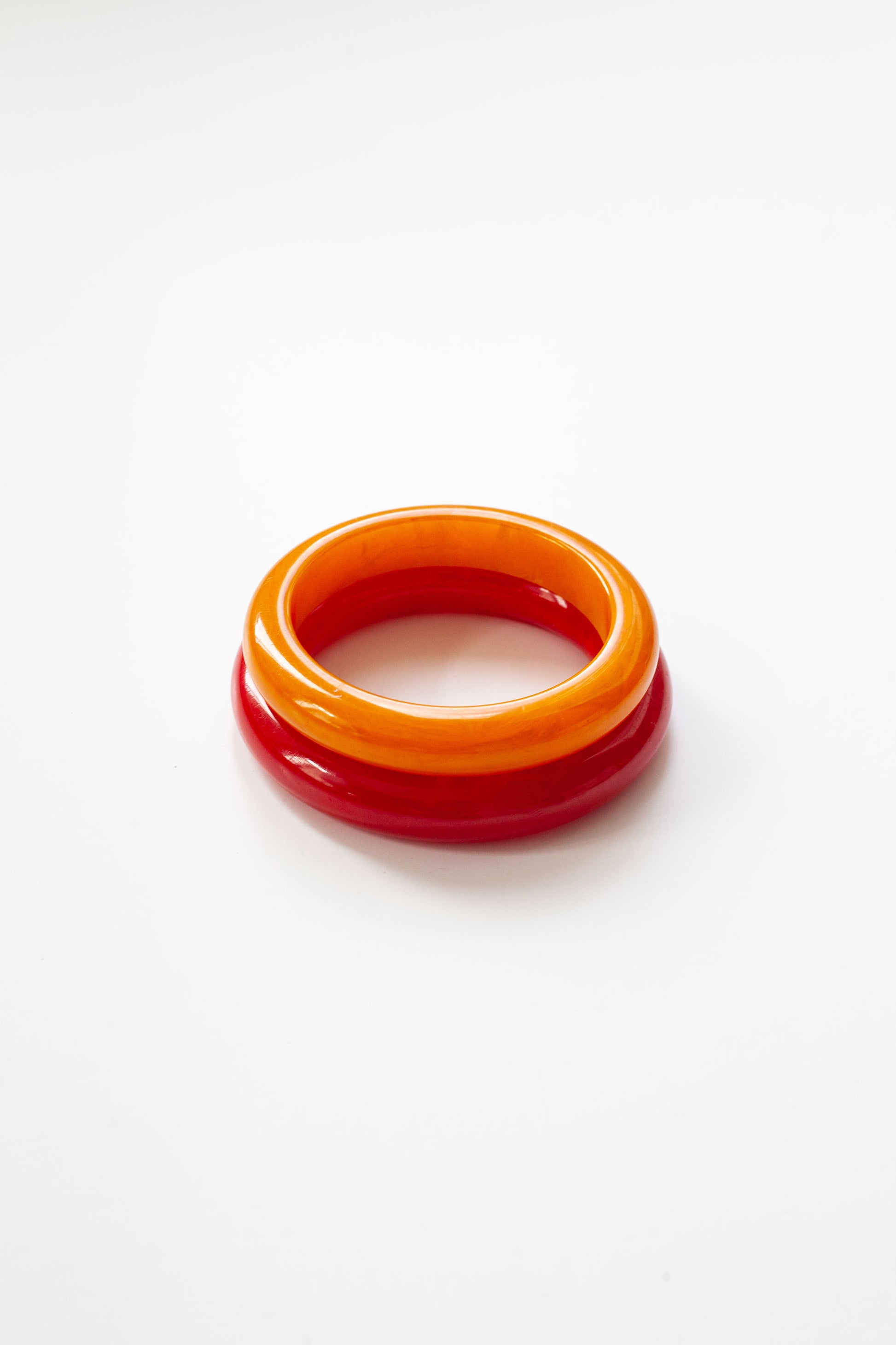 Elevate your wrist with this curated pair of vintage bangles in striking red and orange hues.