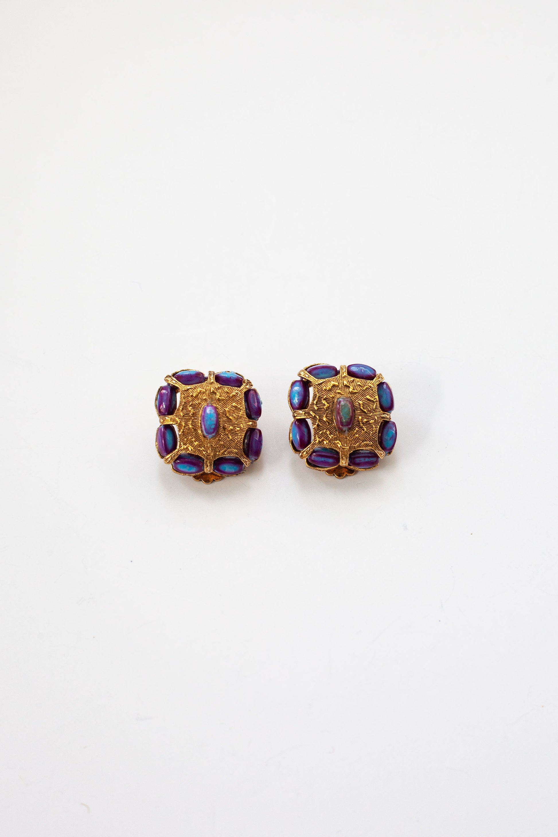 Vintage signed Selini purple and blue beaded earrings. Matching necklace also available. Selini jewelry was produced in New York City between 1940-1970 and was known for their bold costume jewelry.