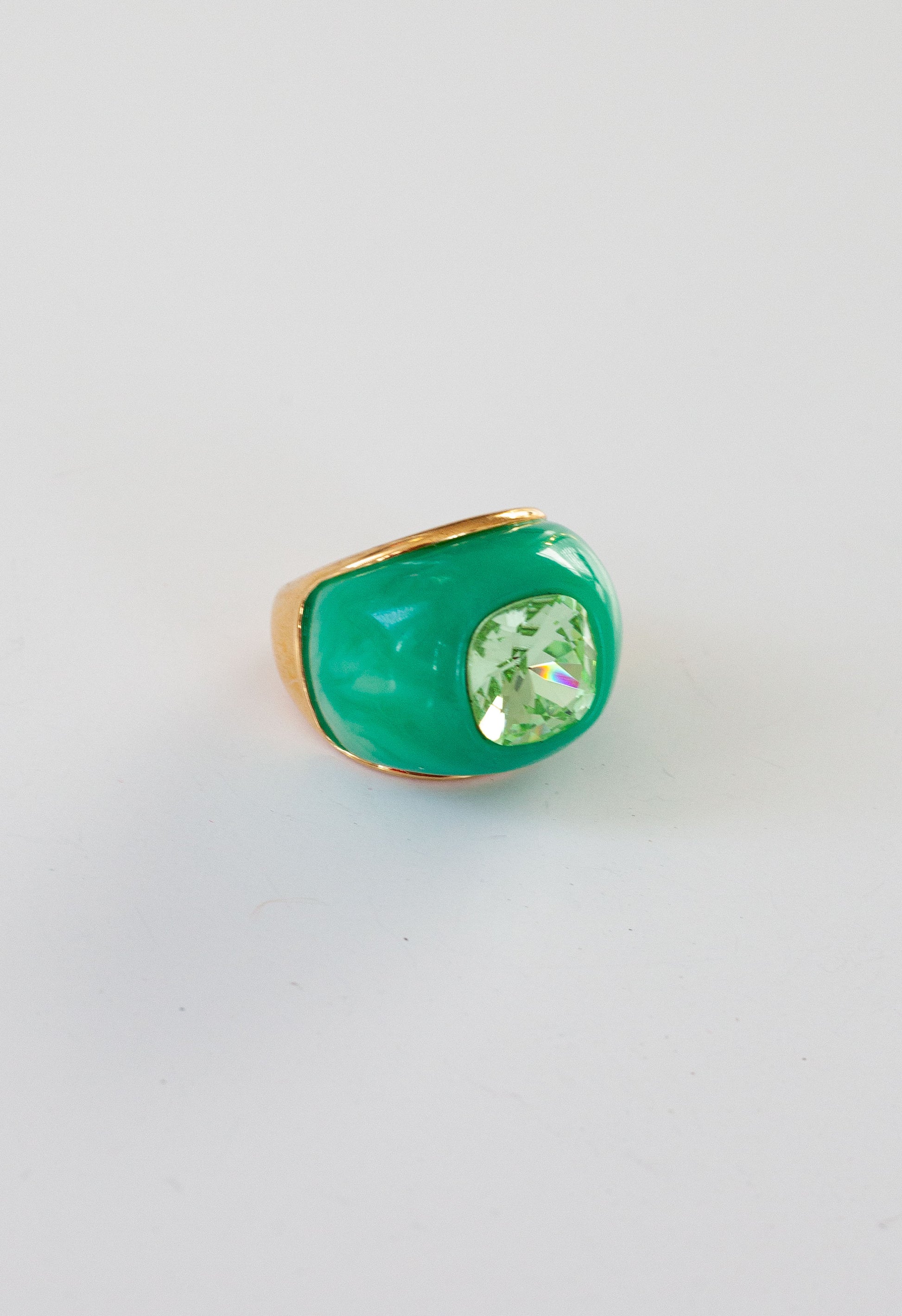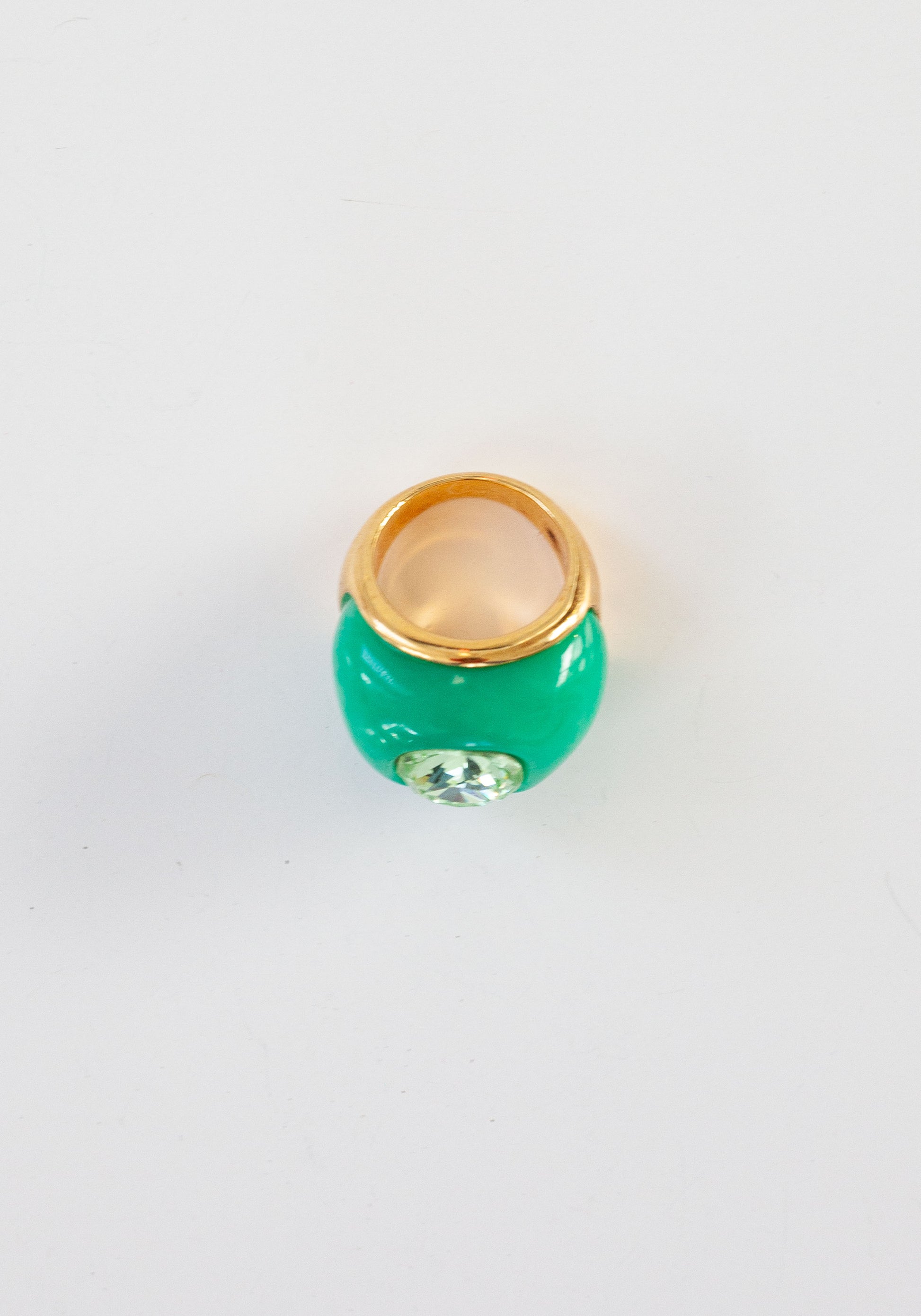 Vintage Kenneth Jay Lane satement ring in gorgeous green colour with a large faceted set rhinestone.