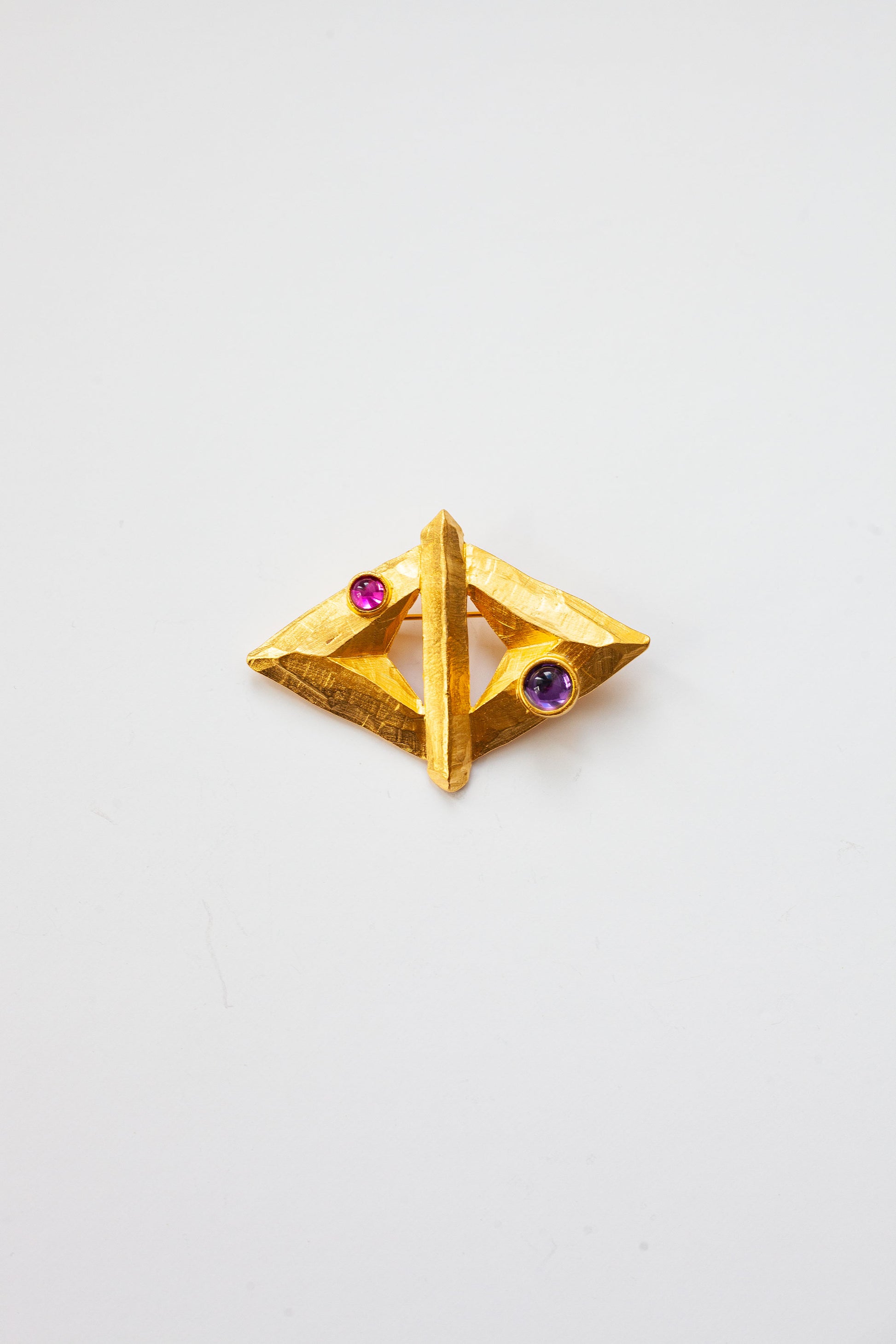 A gorgeous matte-gold vintage gripoix brooch with pink and purple cabachons.
