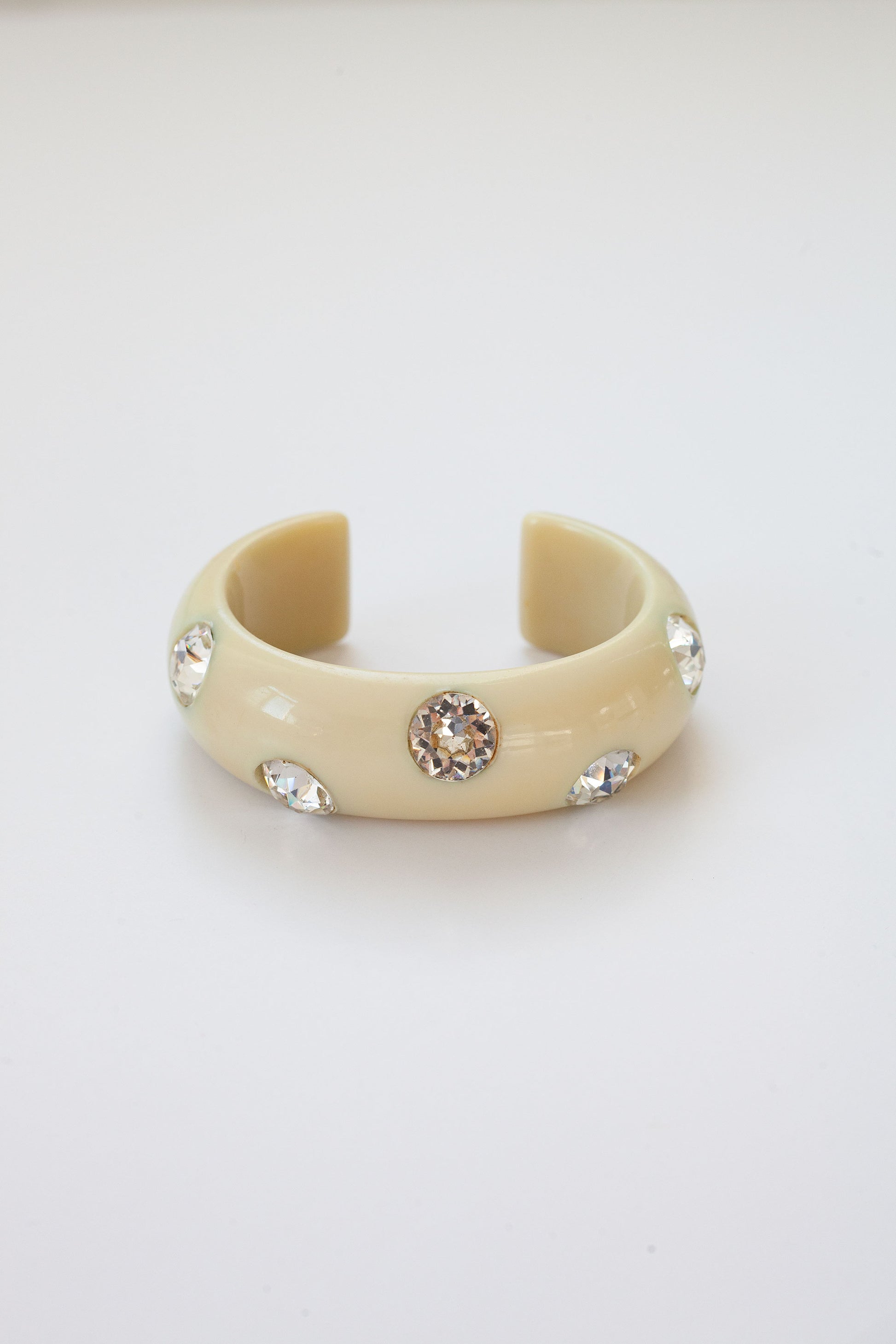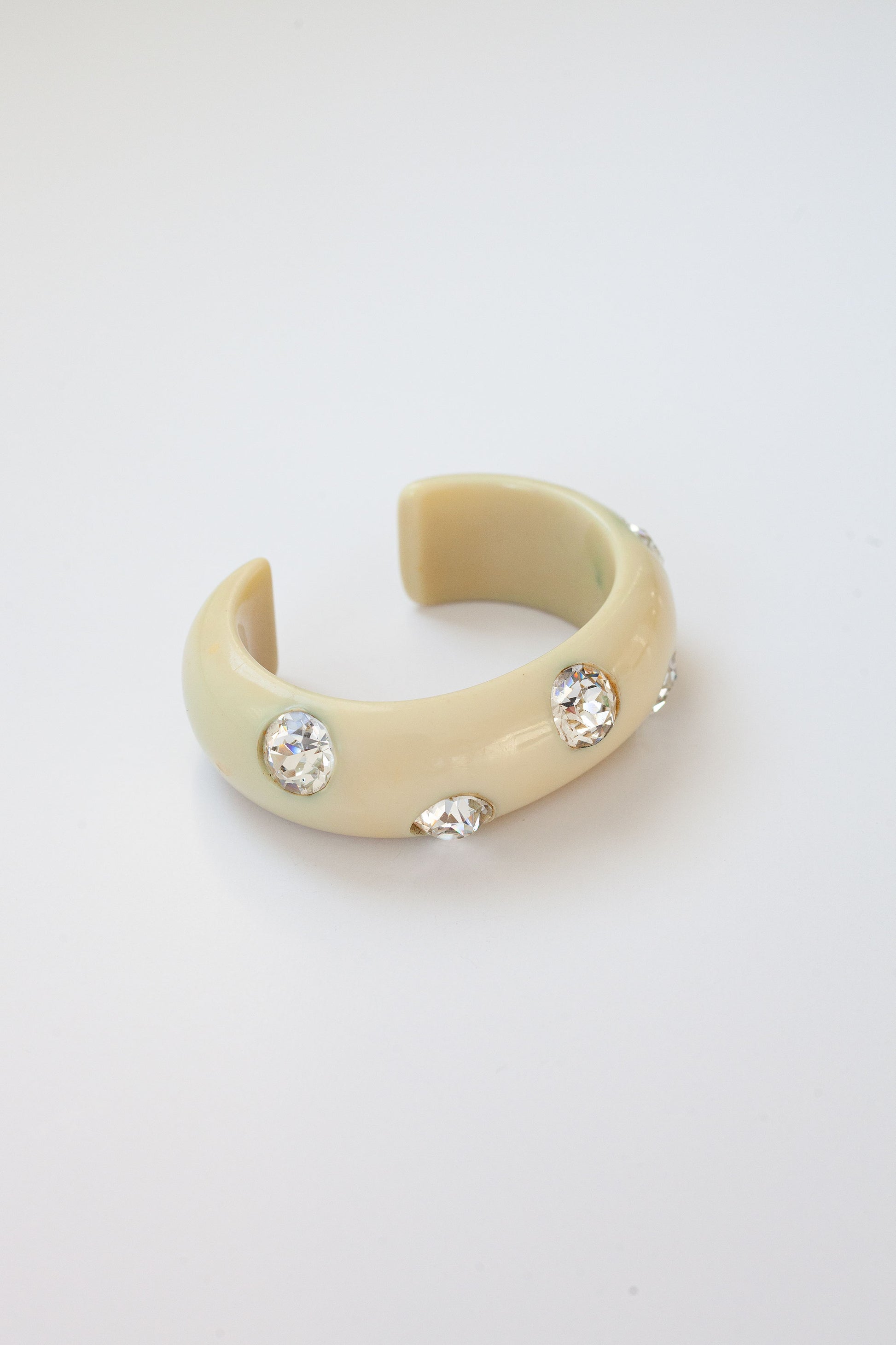 Vintage celluloid cuff bangle, with large rhinestones.