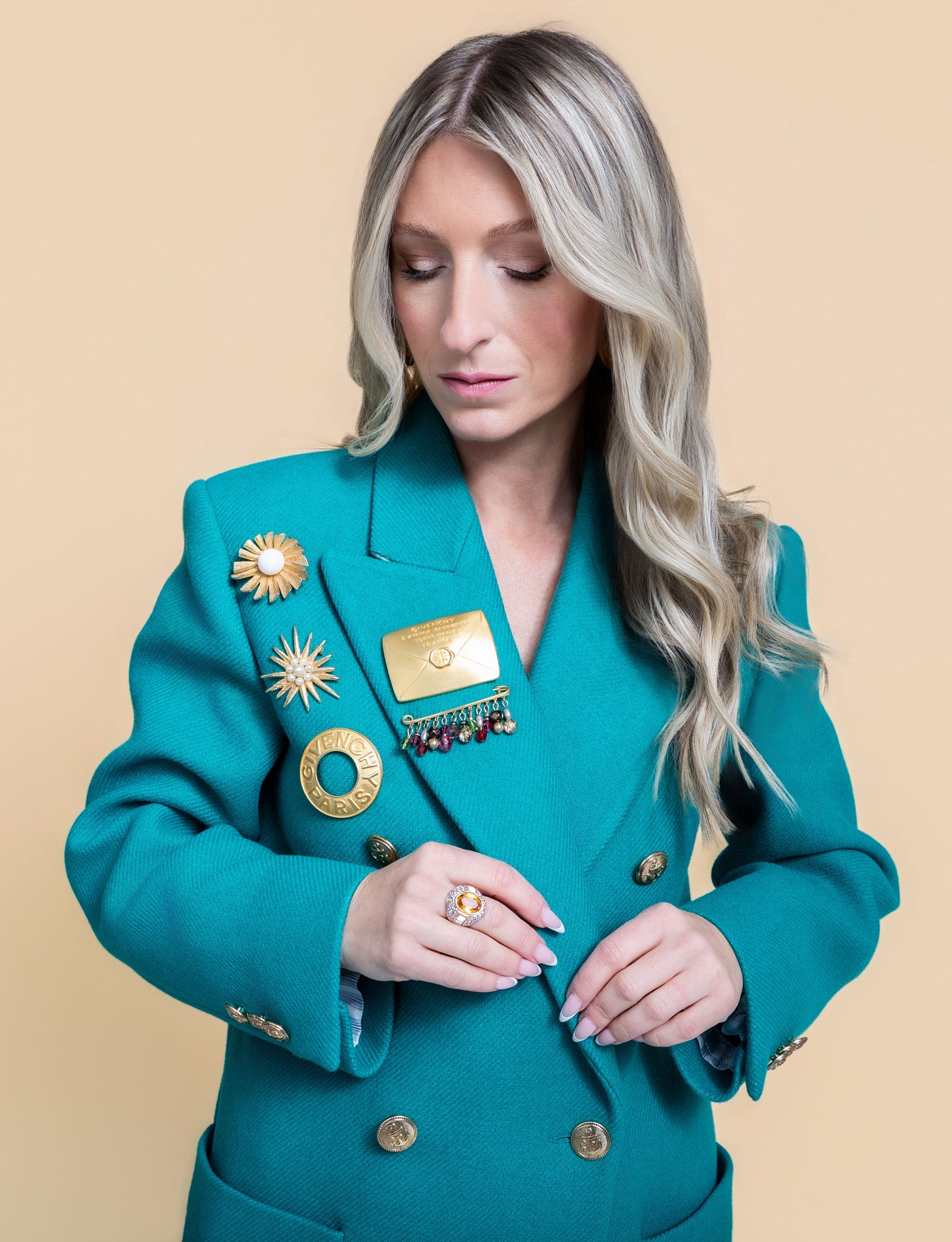 Striking vintage oversized GIVENCHY envelope brooch featuring a detailed engraving of the atelier address on its front. This piece is an ideal accessory to elevate your brooch styling this Fall season.