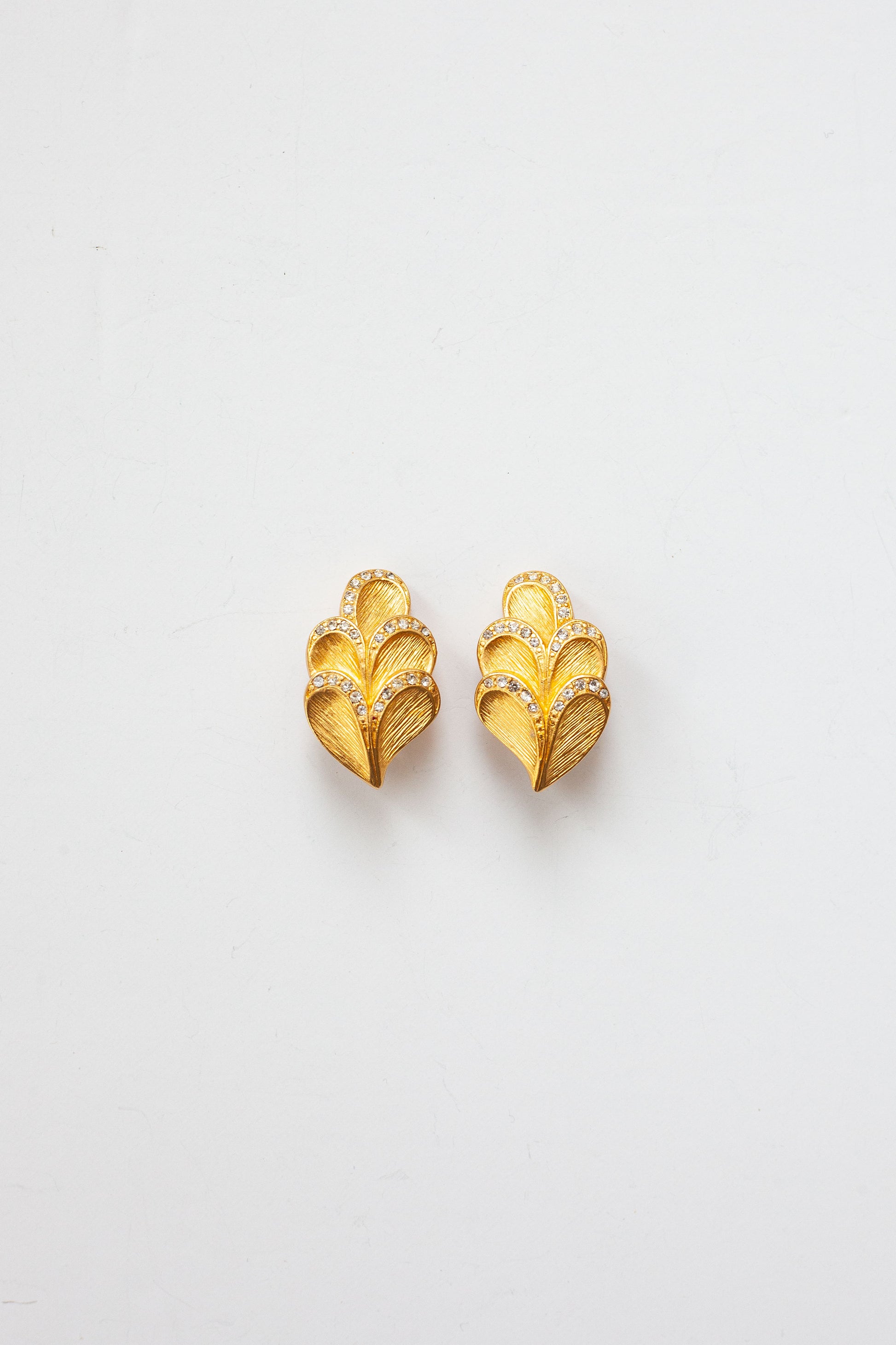 Luxury vintage Oscar de la Renta scalloped clip-on earrings with rhinestones.