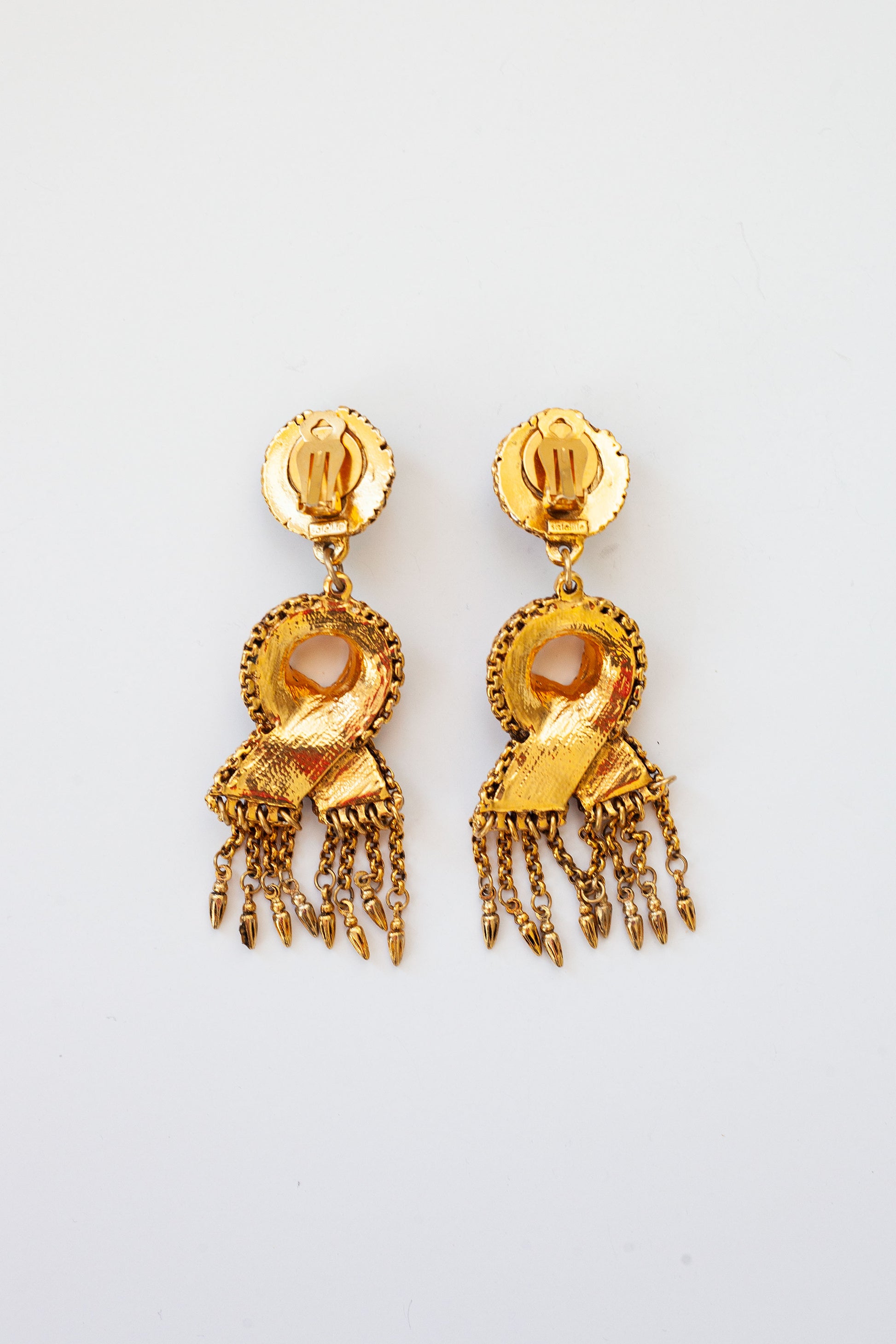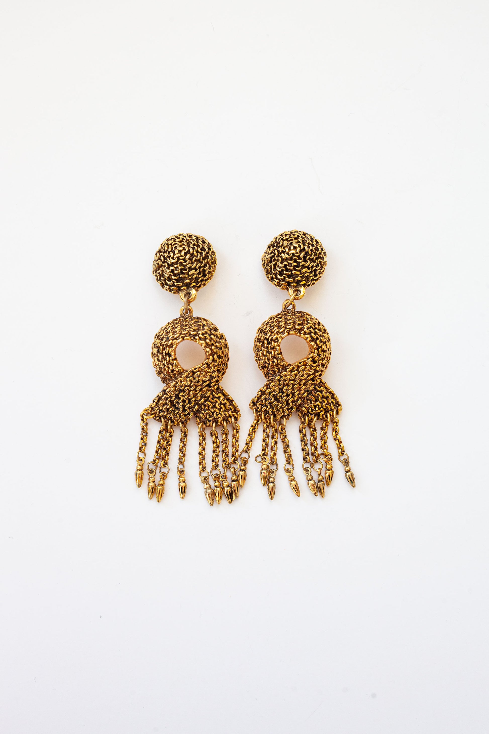 Exquisite vintage Satellite Paris dangle earrings with a doorknocker style and chain drops. Made in Paris.