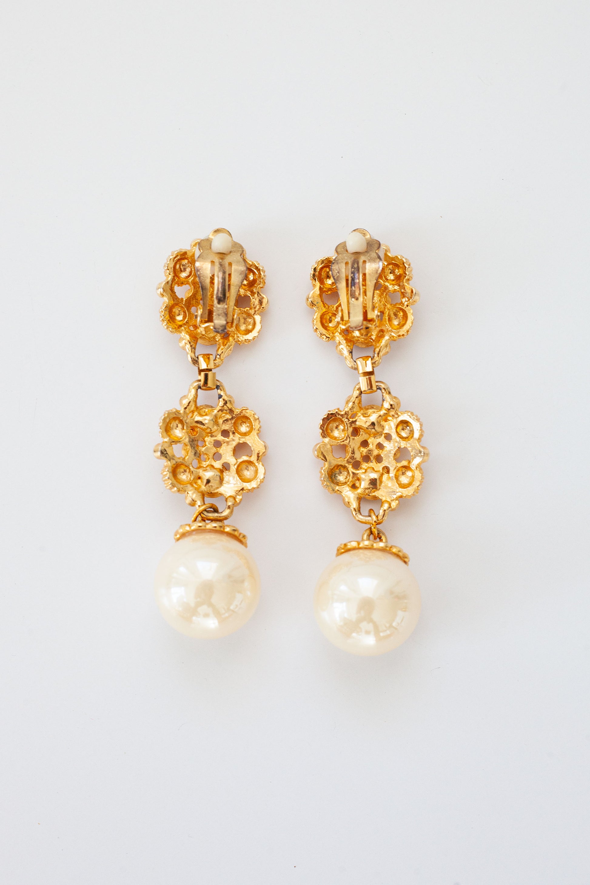Vintage Gold Pearl Dangle Earrings