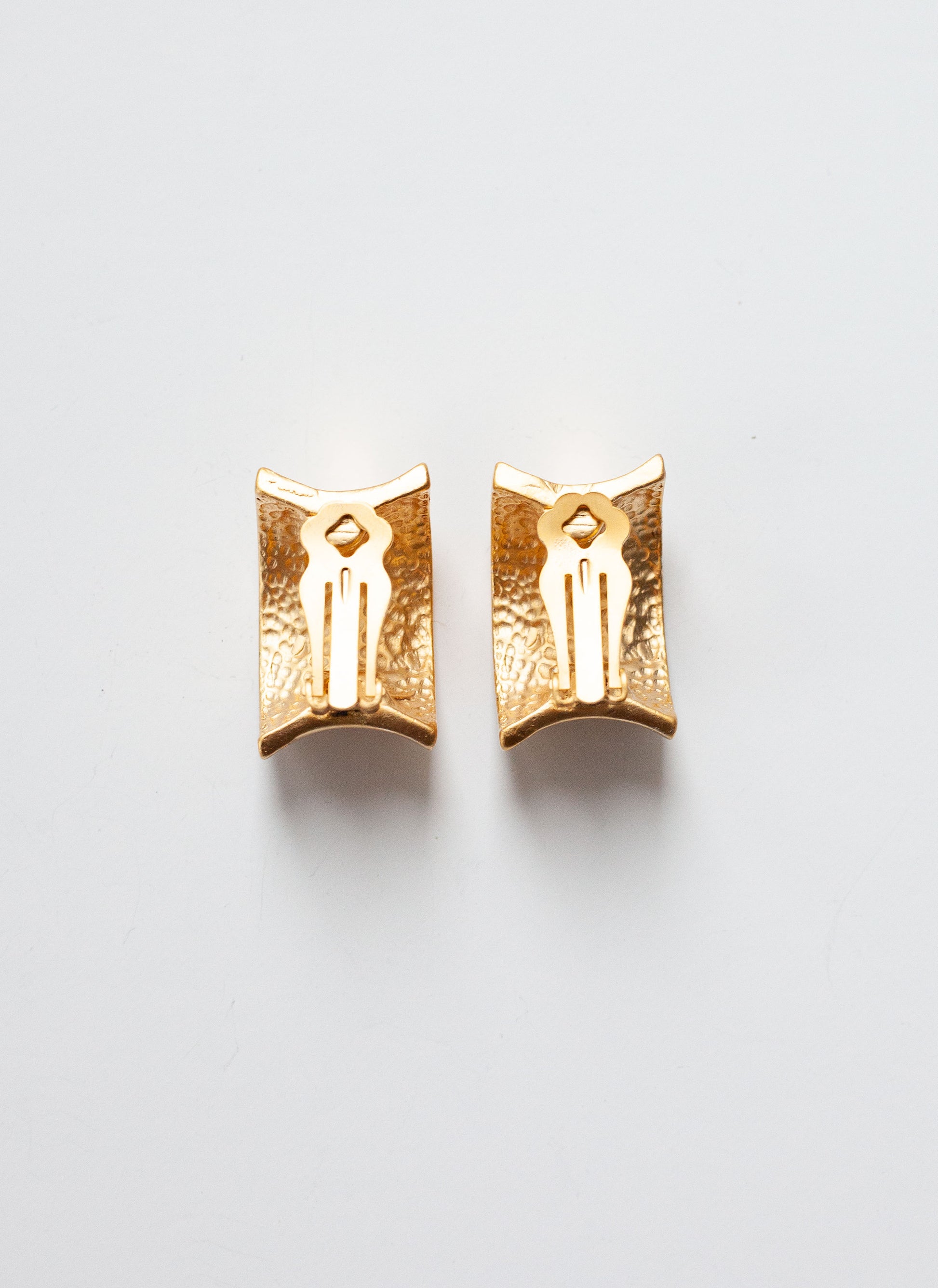 These deadstock vintage half round clip-on earrings feature a brushed gold finish and are a unique and timeless addition to your collection. Sourced in London, England.