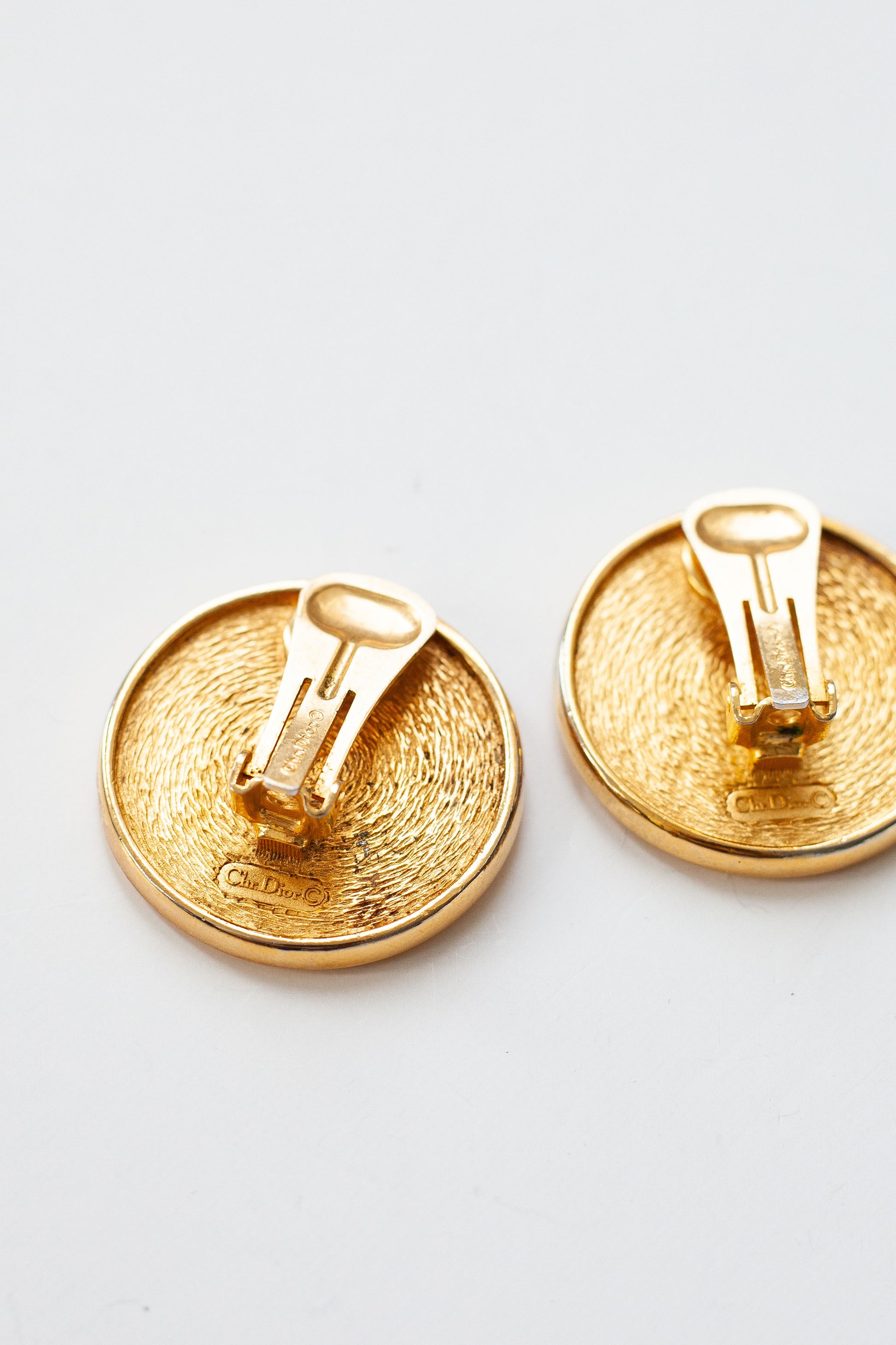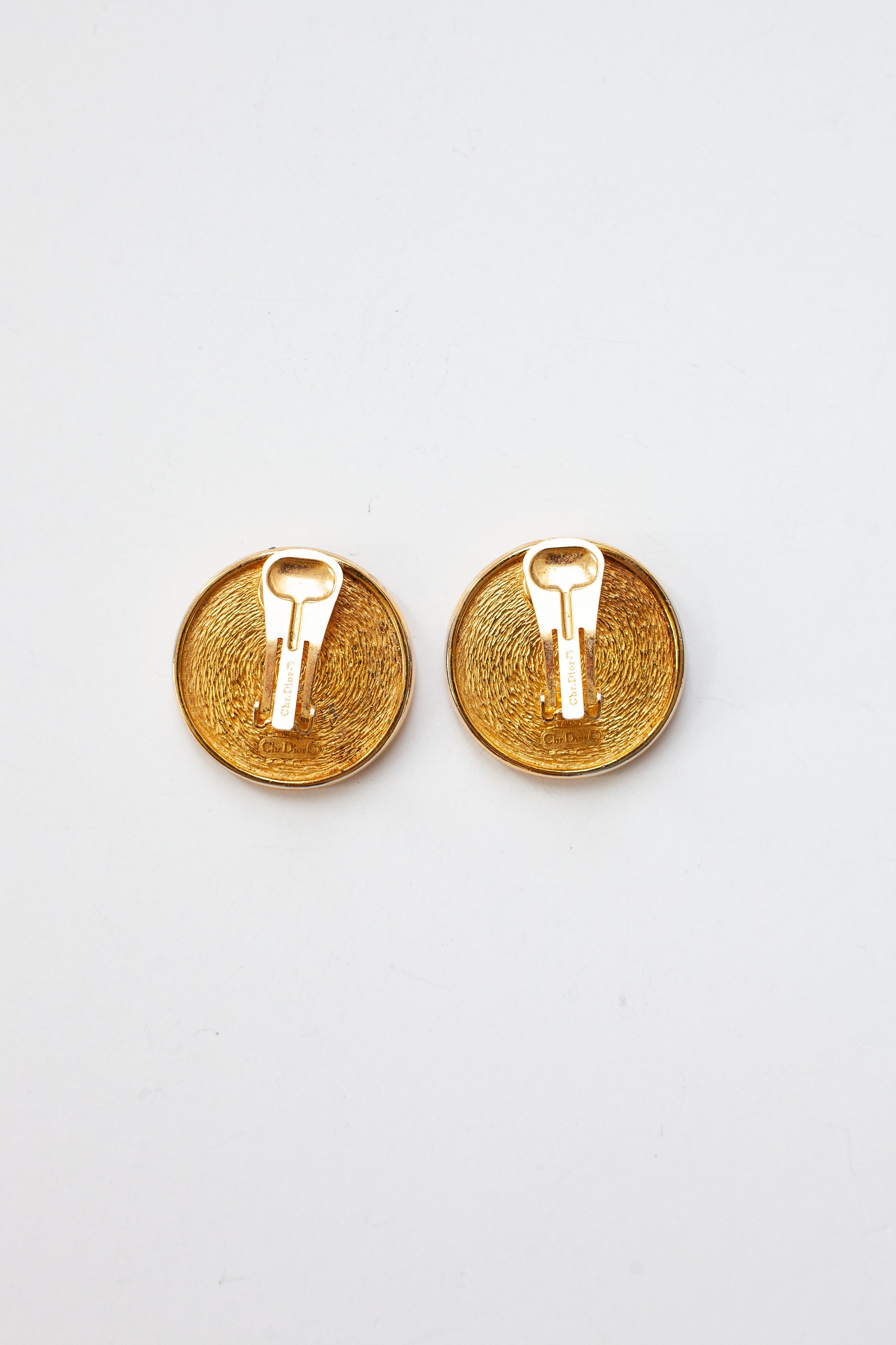 Iconic vintage Christian Dior clip-on earrings featuring an oversized monogram logo that exemplifies the house's signature style.