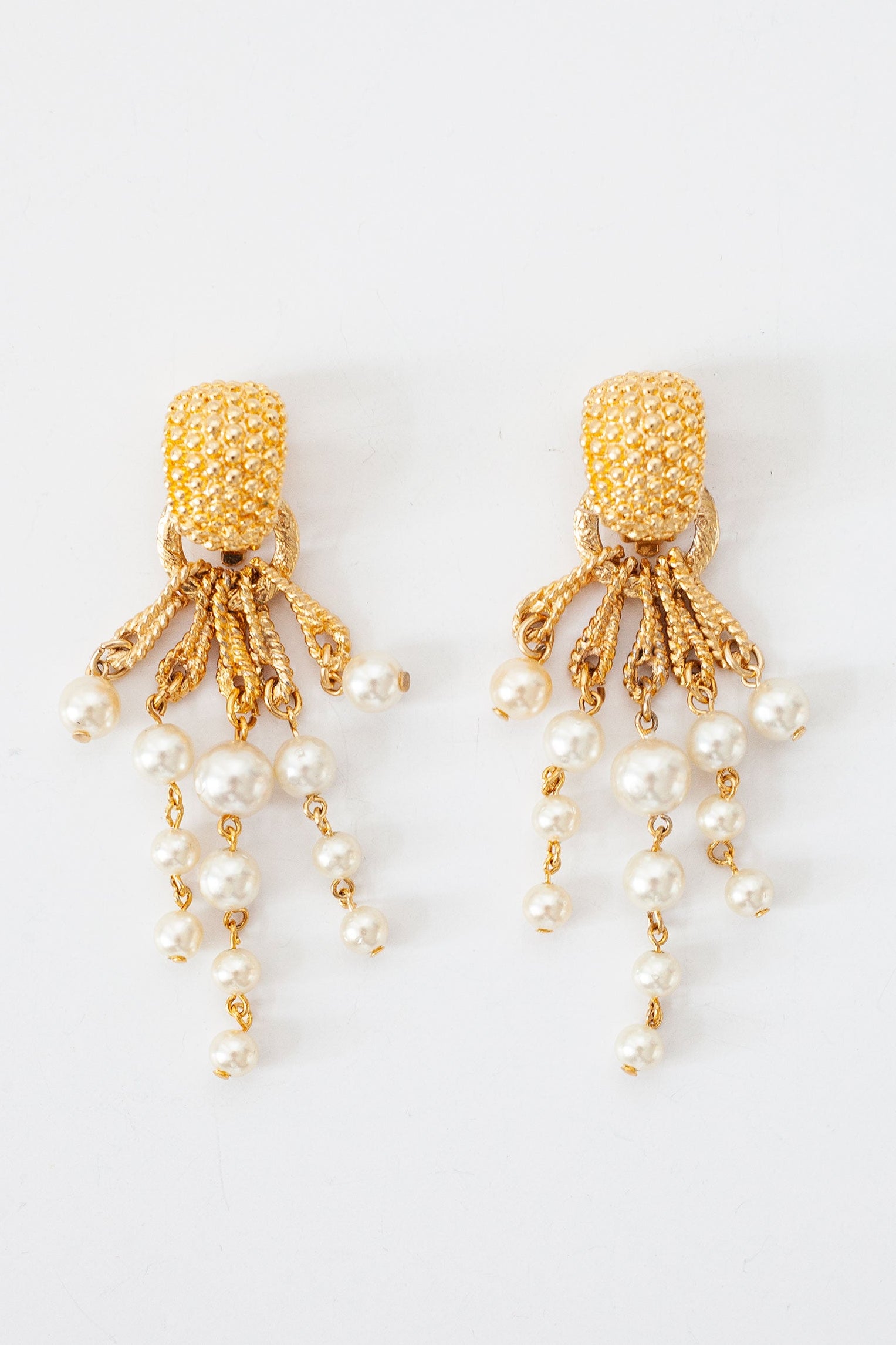 Timeless vintage clip-on earrings featuring faux-pearl drops.