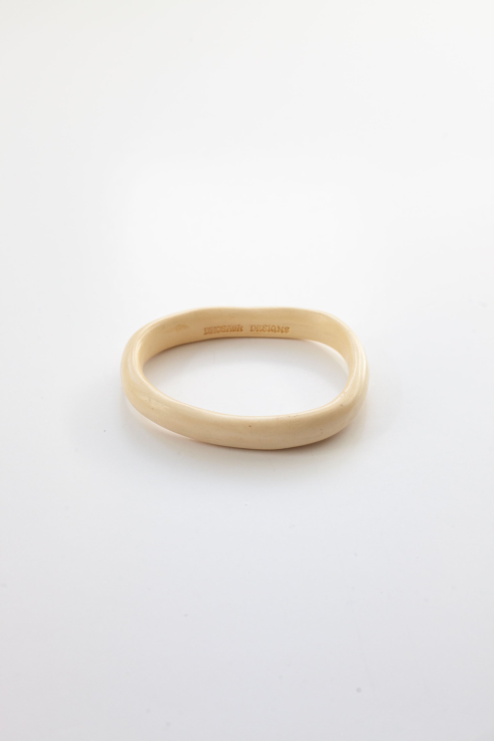 Crafted by the renowned Australian design house Dinosaur Designs, this vintage resin bangle showcases an organic, sculptural form in a soft cream tone.