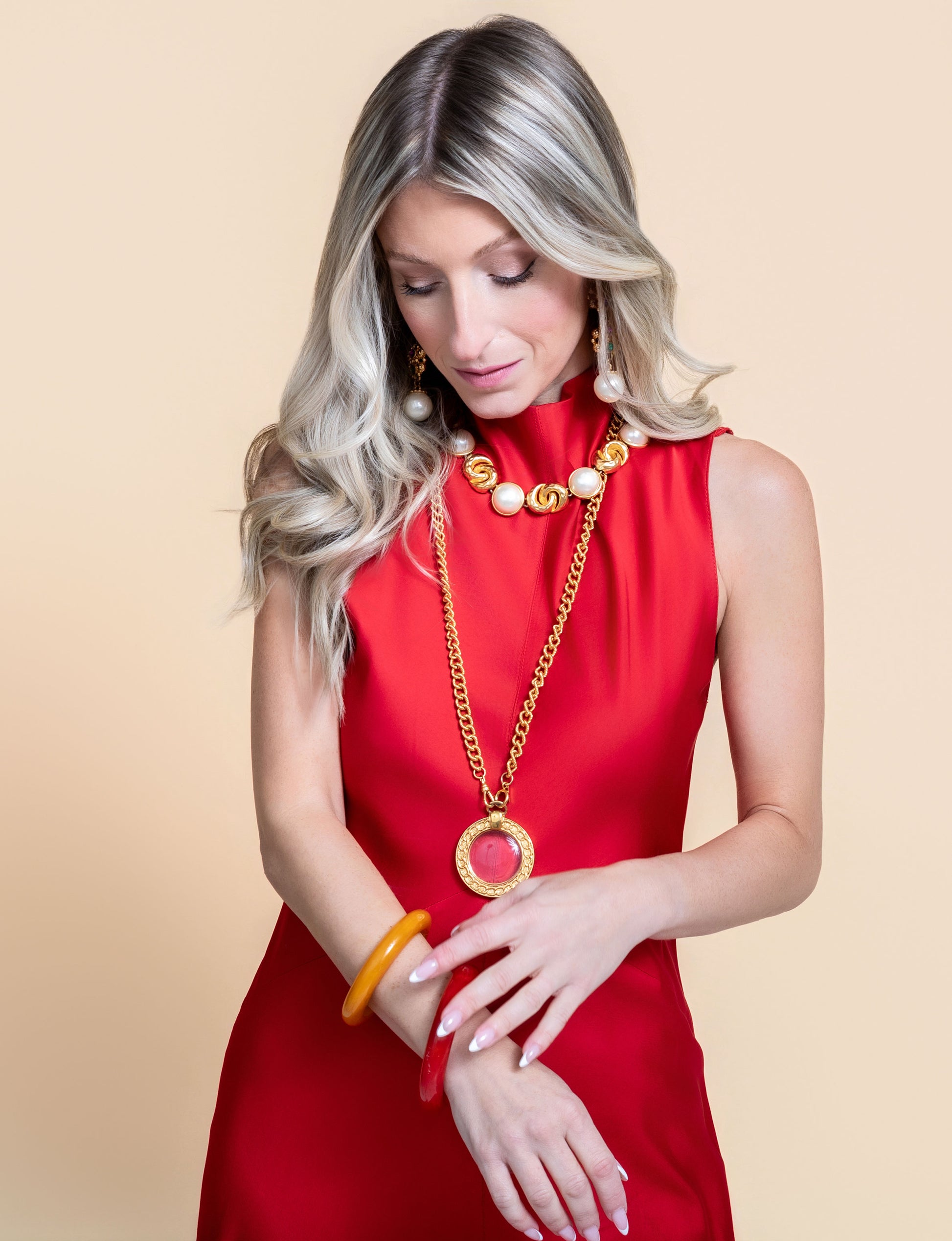 Heavy, signed Carlisle vintage chain with magnifying pendant. Pendant is lightweight. Carlisle was an American jewelry brand between 1981-2012 producing limited quantity, high-quality costume jewelry.