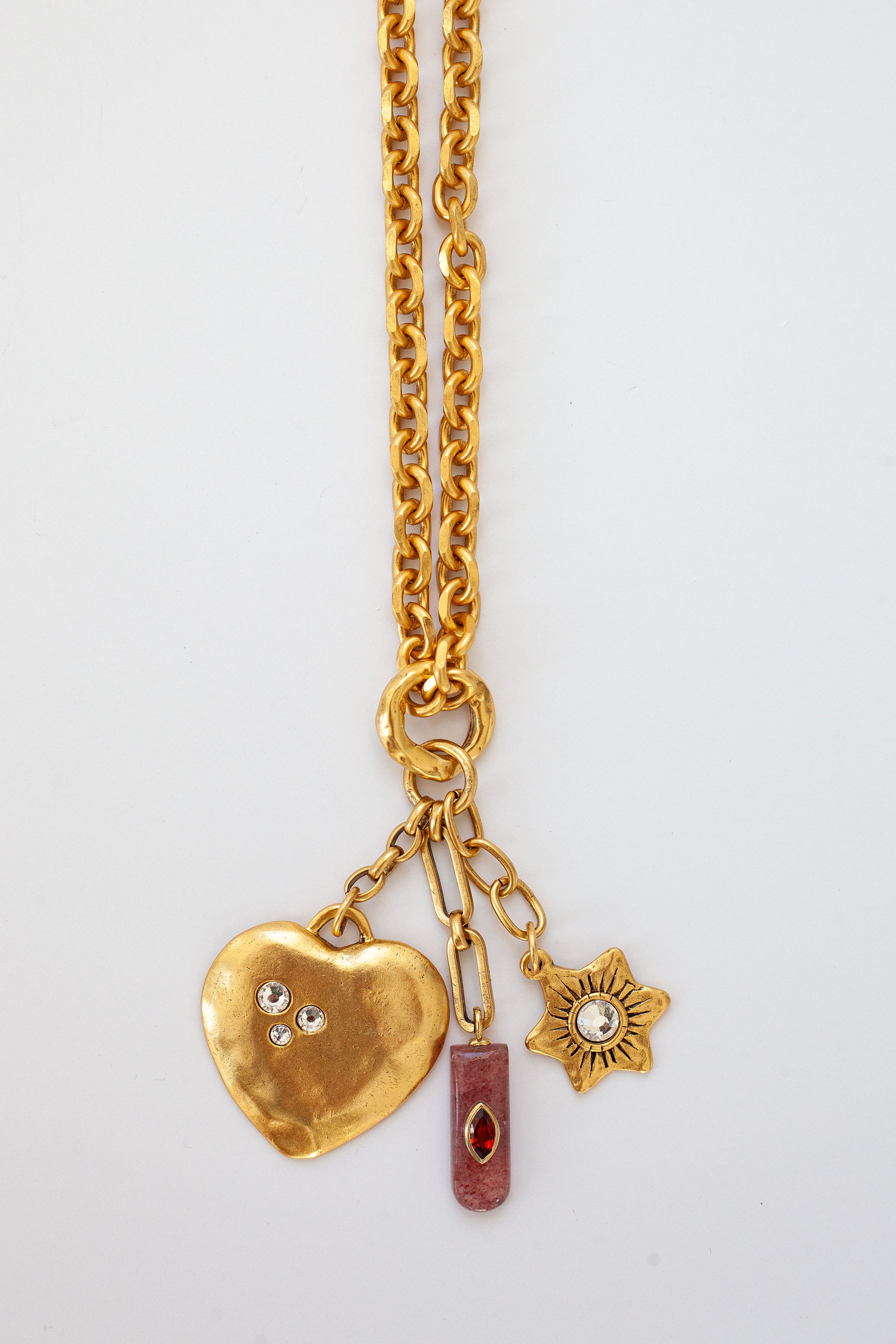 The Vivienne Necklace features a chunky bold chain, accented with three distinctive pendant charms that will add sophistication to any outfit.